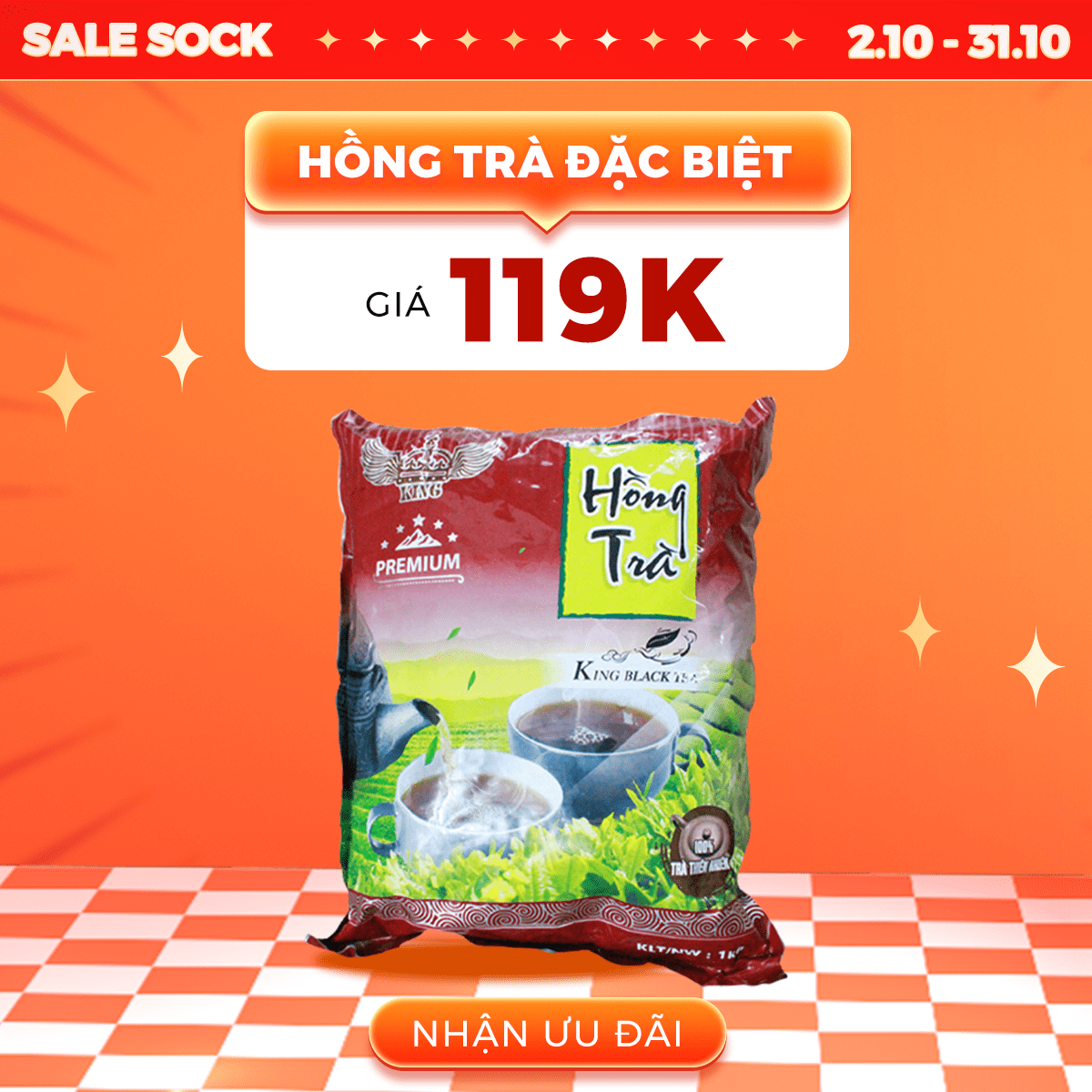 - Hồng trà King đặc biệt giá chỉ 119K/gói